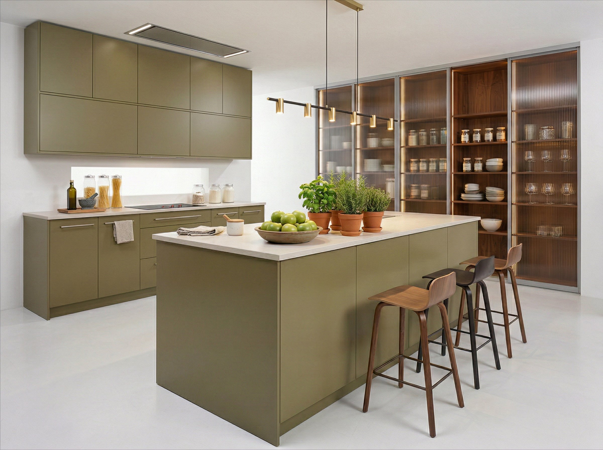 Akryl, dzięki zwartej strukturze i wysokiej odporności na uszkodzenia powierzchniowe, dobrze radzi sobie w takich warunkach. Warianty matowe dodatkowo ograniczają widoczność odcisków palców, co jest szczególnie istotne przy frontach bez uchwytów i dużych, jednolitych płaszczyznach. Lakier również może sprawdzić się w kuchni – zwłaszcza gdy zależy nam na konkretnym kolorze lub bardziej dekoracyjnej formie. Warunkiem jest jednak wysoka jakość wykonania i ostrożne użytkowanie. Trzeba pamiętać, że głęboki połysk lakieru, choć bardzo efektowny, może być nieco bardziej podatny na mikrorysy w dłuższej perspektywie.